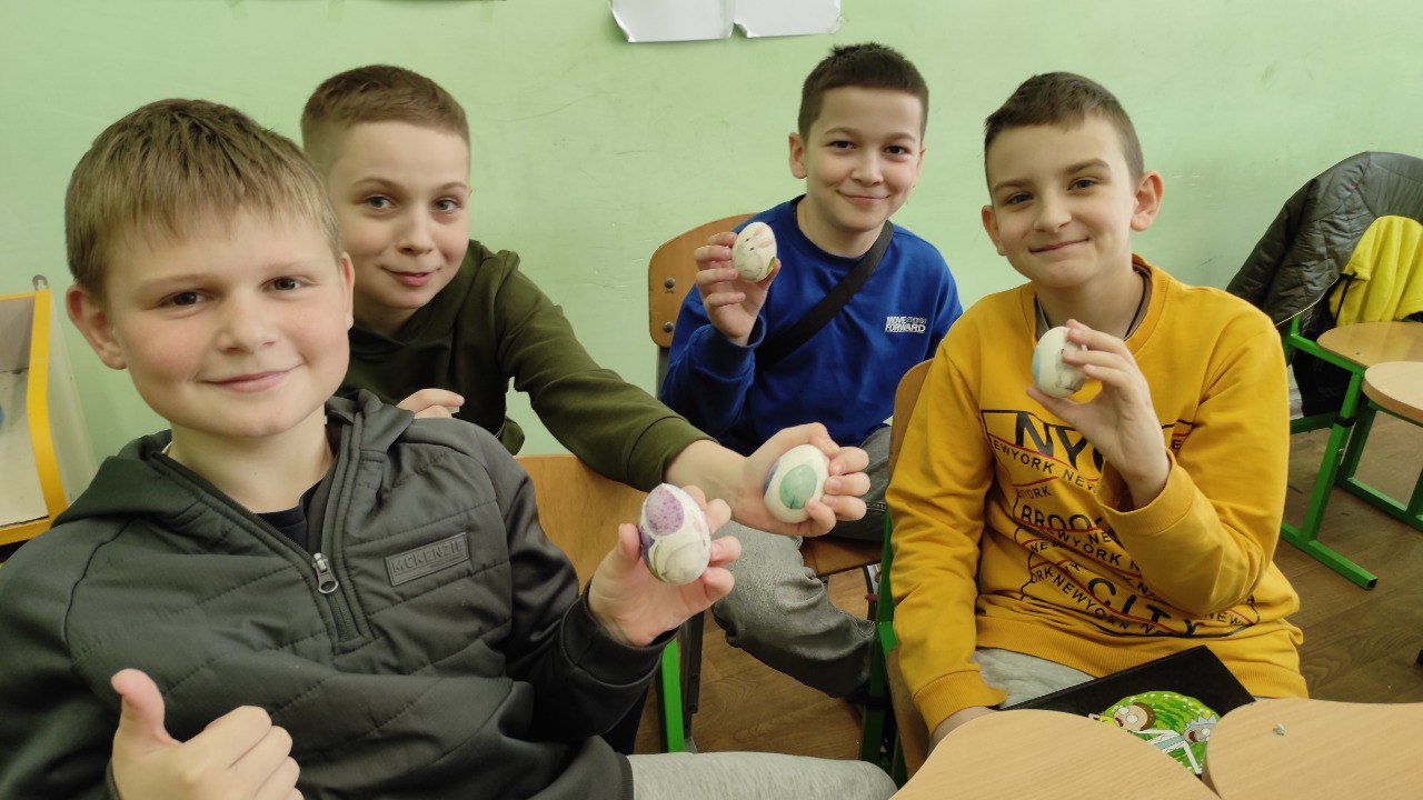 Зустрічаємо Великдень з гарним настроєм та з чудовими яєчками у стилі декупаж. Директор Юлія Неліна та заступник директора Ольга Войтюк Хмельницької школи іконопису «Нікош» провели майстер-класи для учнів 4-Б та 4-Г класу Гімназії № 20 ім. С.Єфремова. Створювали неймовірно гарні та ніжні декупажні прикраси для святкового кошика. У кожного учня вийшли неповторні яєчка.