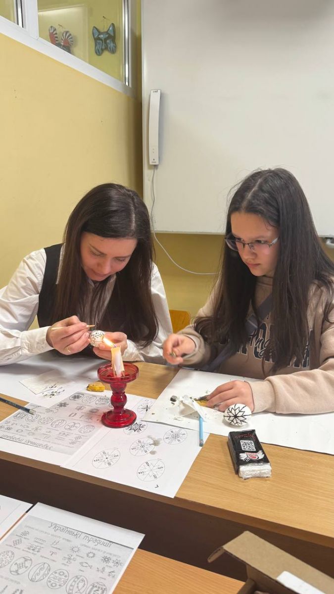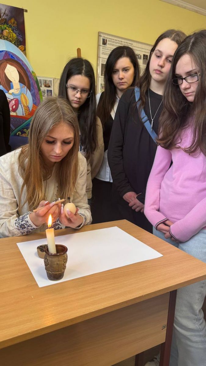 Усі присутні із захопленням вчилися власноруч майстерності виготовлення писанки із різними орнаментальними мотивами, кожна писанка із звичайного курячого яйця перетворювалася на маленький світ – тут і квіти, і дерево життя, і символи сонця, і різні геометричні фігури.