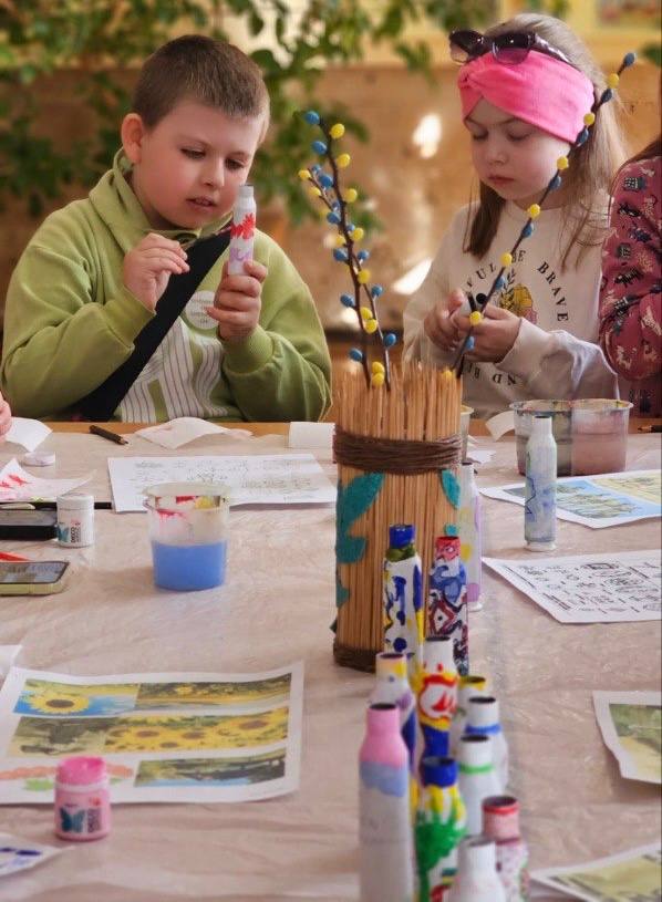 Учні творчих колективів Центру національного виховання учнівської молоді з душею і натхненням взяли участь у майстер-класі, де розмальовували гільзи, передані нашими захисниками із Сумського напрямку.