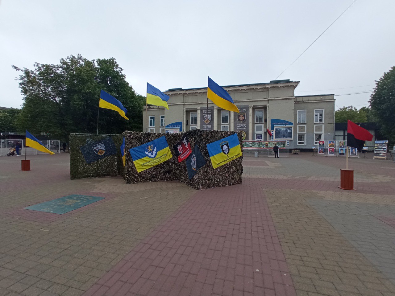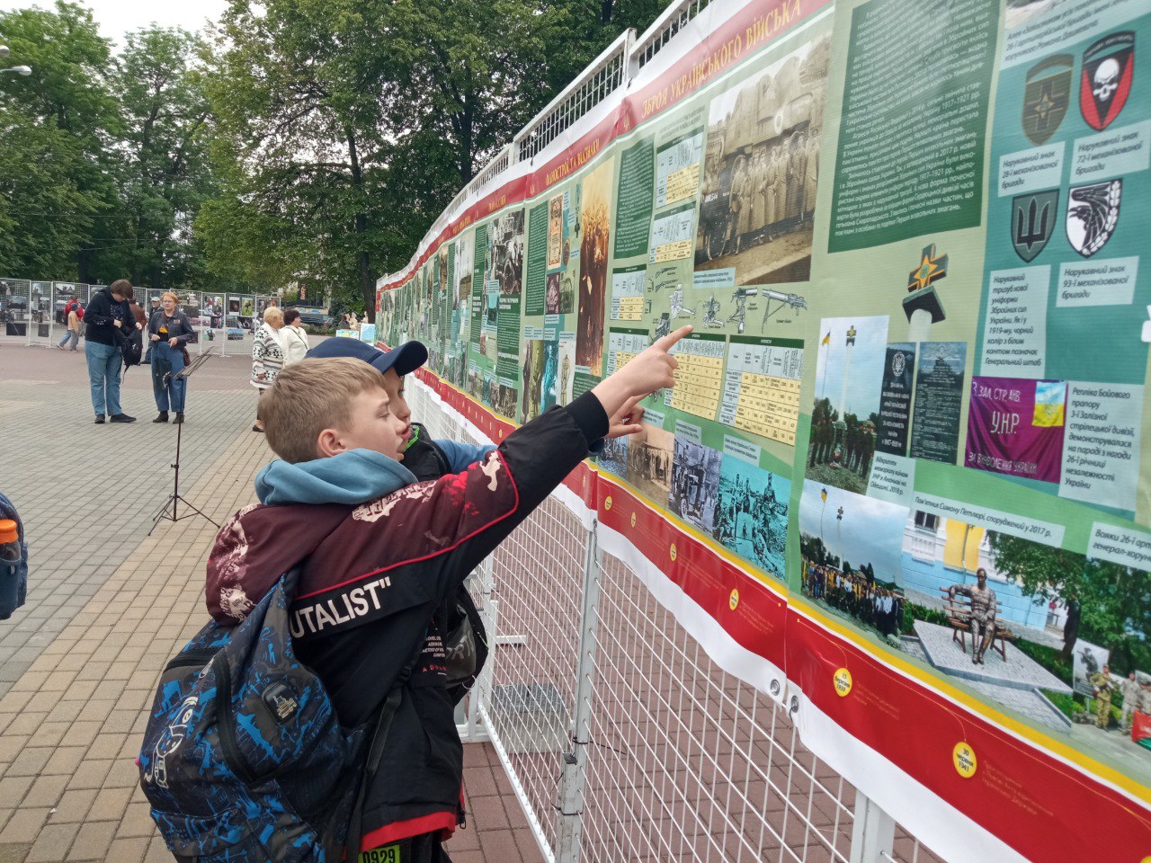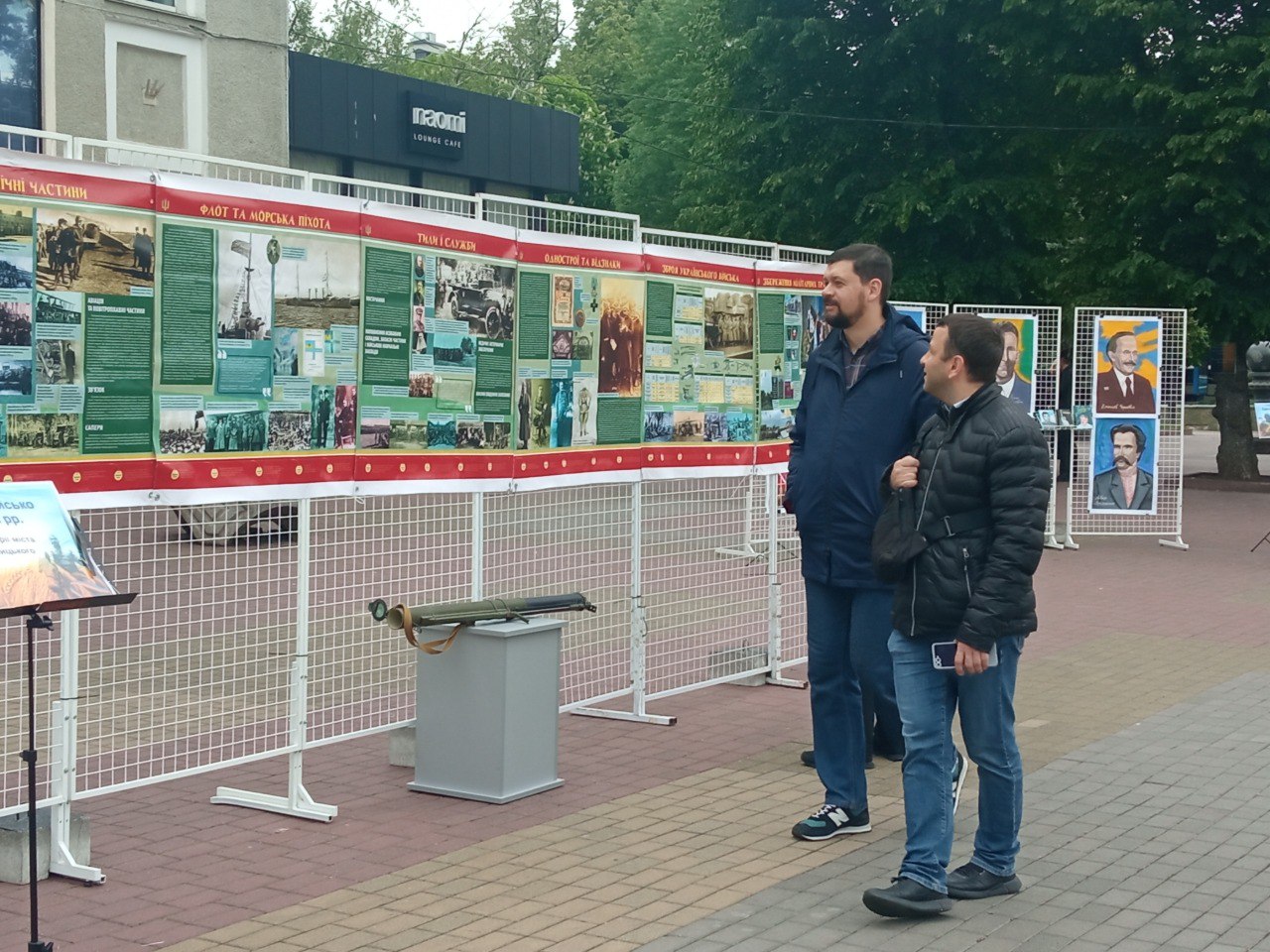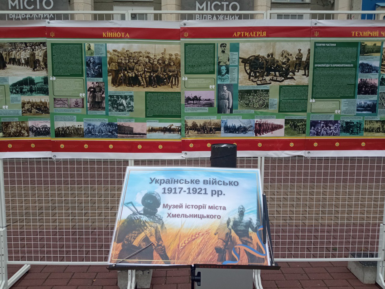 У День Героїв музей історії міста Хмельницького презентує на майдані перед кінотеатром імені Т. Г. Шевченка експозиції, присвячені історії та символіці Українських Збройних Сил.