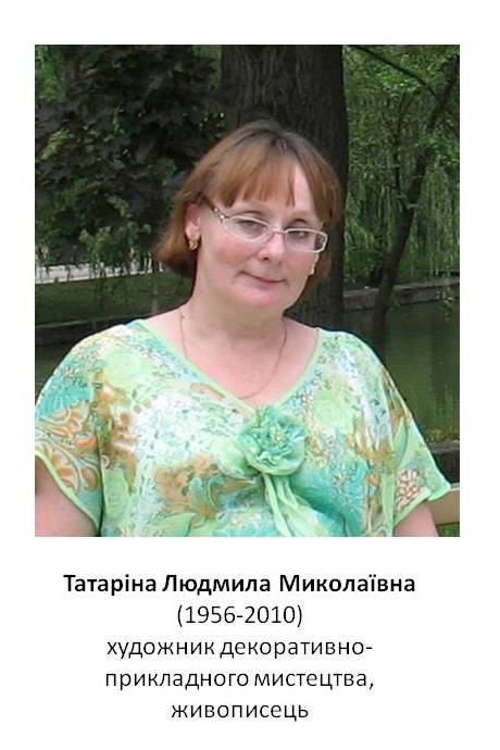 Татаріна Людмила Миколаївна народилась 11.09.1956 в родині офіцера Радянської армії (м.Сомбатхей, Угорщина). Закінчила у 1972 р. 8 класів у м. Хмельницькому, паралельно навчаючись у дитячій художній школі (клас М.Мазура), у 1977 р. – Вижницьке училище прикладного мистецтва за спеціальністю «художня вишивка». Працювала художником, художником – оформлювачем, художником – рекламістом. Багато років віддала роботі в Хмельницькому художньо-виробничому комбінаті, з 1992 по 2004 рік працювала творчо по своїй основній спеціальності, створюючи різноманітні узори й орнаменти та вишиваючи їх на полотні, крім того постійно займалась живописом і рисунком. У 2006 року захворіла на лімфолейкоз, померла у Хмельницькому 14 вересня 2010 року.