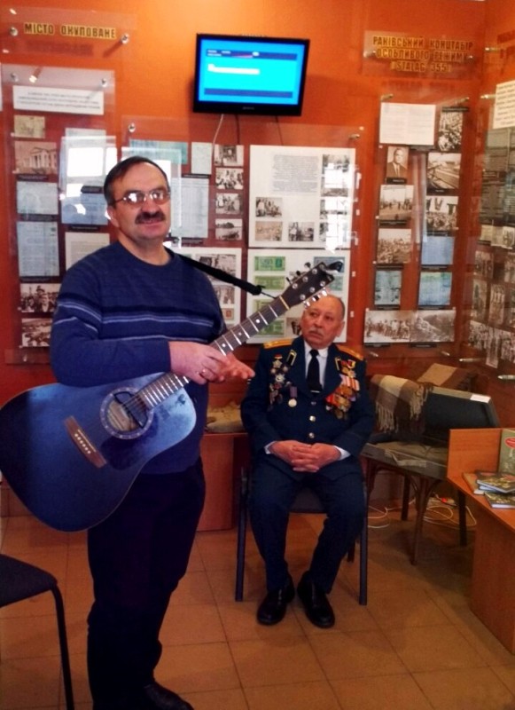Завершився урок мужності музичним вітанням у виконанні хмельницького барда Леоніда Мазура, який виконав чудові композиції на слова відомих поезій Т. Шевченка «Мені однаково» та В. Булаєнка «Пісня про матір». Також гості заходуз цікавістю оглянули експозицію музею Проскурівського підпілля.
