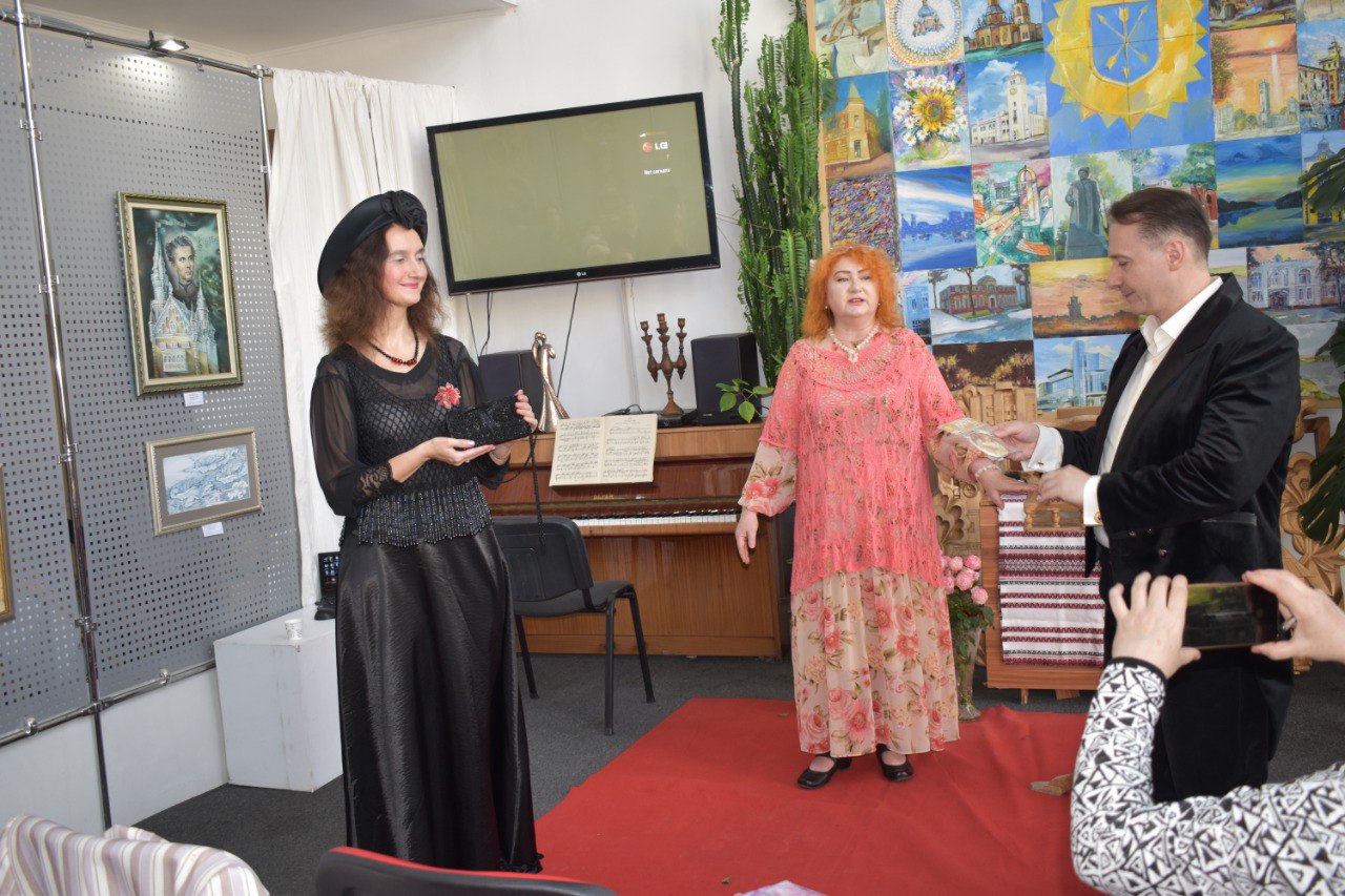Пані Вікторія привітала добрих друзів музею з 15-літтям праці громадської організації, подякувала за громадську активність, бажання натхненно співпрацювати у такому чудовому творчому тандемі, відкритість, творчий неспокій, готовність до нових проєктів. А також провела невеликий екскурс в історію виникнення та побутування мистецького напрямку модерн, котрий став темою творчої зустрічі і з котрим тісно пов`язаний розвиток культури та, зокрема, архітектури нашого міста. Адже ще й нині, мандруючи вулицями Хмельницького, можна відчути романтику архітектури своєрідного цегляного стилю, або стилю модерн, в якому побудовані старовинні будівлі тодішнього Проскурова в кінці ХІХ на початку ХХ століття. І недаремно організатори виставки, фахові художники, мистецтвознавці взяли за фон для афіші із зображенням актриси Віри Холодної роботи Ірини Стасюк старовинні різьблені двері в стилі модерну, котрі ще й досі прикрашають вхід до однієї з найстаріших будівель на вулиці Проскурівській – ілюзіону «Модерн», де нині розміщена Хмельницька музична школа № 1 імені М. Мозгового, в якій працює співголова ГО «Спадщина» викладач, концертмейстер Тетяна Чигрин. Цікаві мистецько-історичні паралелі! Недаремно одна із експоненток нової виставки, талановита художниця, учениця Радимира Міляра, Ірина Стасюк дуже майстерно зобразила портрет славетного київського архітектора Владислава Городецького, котрий проєктував свої відомі будівлі в стилі модерн на зламі ХІХ та ХХ століть, і котрого називали «київським Гауді». Славнозвісний київський «будинок з химерами» за його проєктом має свого «побратима» - «будинок з драконами» невідомого архітектора в нашому місті, на історичній вулиці Проскурівській, в якому нині діє все та ж музична школа № 1. Пані Вікторія повідала й інші цікаві подробиці та провела історичні паралелі, розкриваючи тему « Проскурів та мистецтво у стилі модерн».
