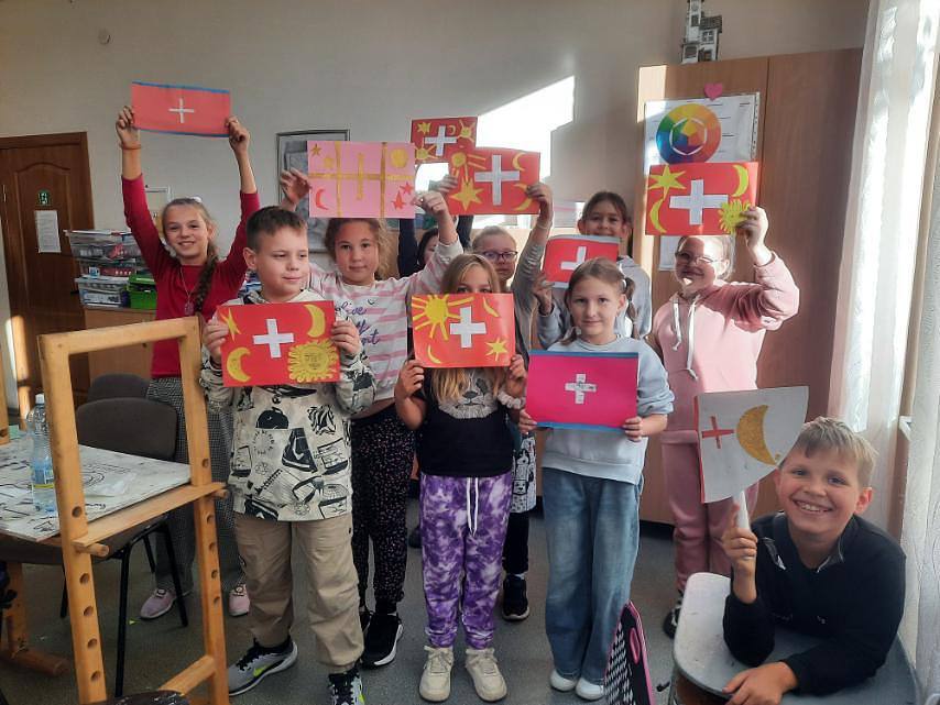 Ви знаєте, що таке прапор? Здебільшого ми уявляємо, що це полотнище прямокутної форми, яке використовується для визначення держав, військових з’єднань тощо. А що то за наука – вексилологія? Назва походить від латинського слова vexillum (прапор) та грецького logos (наука). Вона вивчає прапори, стяги, знамена тощо, досліджуючи їхній історичний зміст. Ще не знаючи цього поняття, і навіть не здогадуючись, що така наука існує, наші юні дослідники - художники намагались у перед-дні свята – Дня українського козацтва створити в техніці плікації козацькі бойові прапори. Відомо, що в добу козацтва українське воїнство мало різнокольорові стяги, які, крім ясного червоного, були малинові, голубі, жовті, зелені, червоно-чорні, часом з оторочкою іншого кольору, переважно з білим рівно-кінцевим хрестом посередині, з введенням символічних солярних знаків: сонця, місяця, зірок, гербів, а також кольорових смуг. Наші учні вибрали для основи папір переважно яскраво-червоного кольору, а для деталей на ньому – жовтий. На світлині викладачем Іриною Бочулею, яка організувала заняття з учнями 4-Д класу елементарного підрівня Хмельницької художньої школи, вони виставлені всі разом, там є й інші різні прапори і прапорці. І неважливо, що двічі правильно, а тричі – вигадливо, тобто, як захотілось їхнім авторам, виконаний Прапор Війська Запорізького Низового (Запорізької Січі), на якому зображені Хрест (символ Боголюдини, головний арійський оберіг), Зоря (шестикутна Зірка Велеса), Сонце і Місяць. Насправді прапор був малинового кольору, але й це не так вже важливо. Головне, що перед і під час виконання завдання, учні познайомились з українською старовиною, дізнались, що і кольори, і символіка, як спадок, перейшла до бойових знамен сучасного воїнства. Зокрема, саме малиновий стяг з хрестом посередині, доповнений певними атрибутами, став прапором Міністерства оборони ЗСУ. На фото можна побачити юних художників, які тримають власноруч виконані зображення прапорів у техніці паперової аплікації.