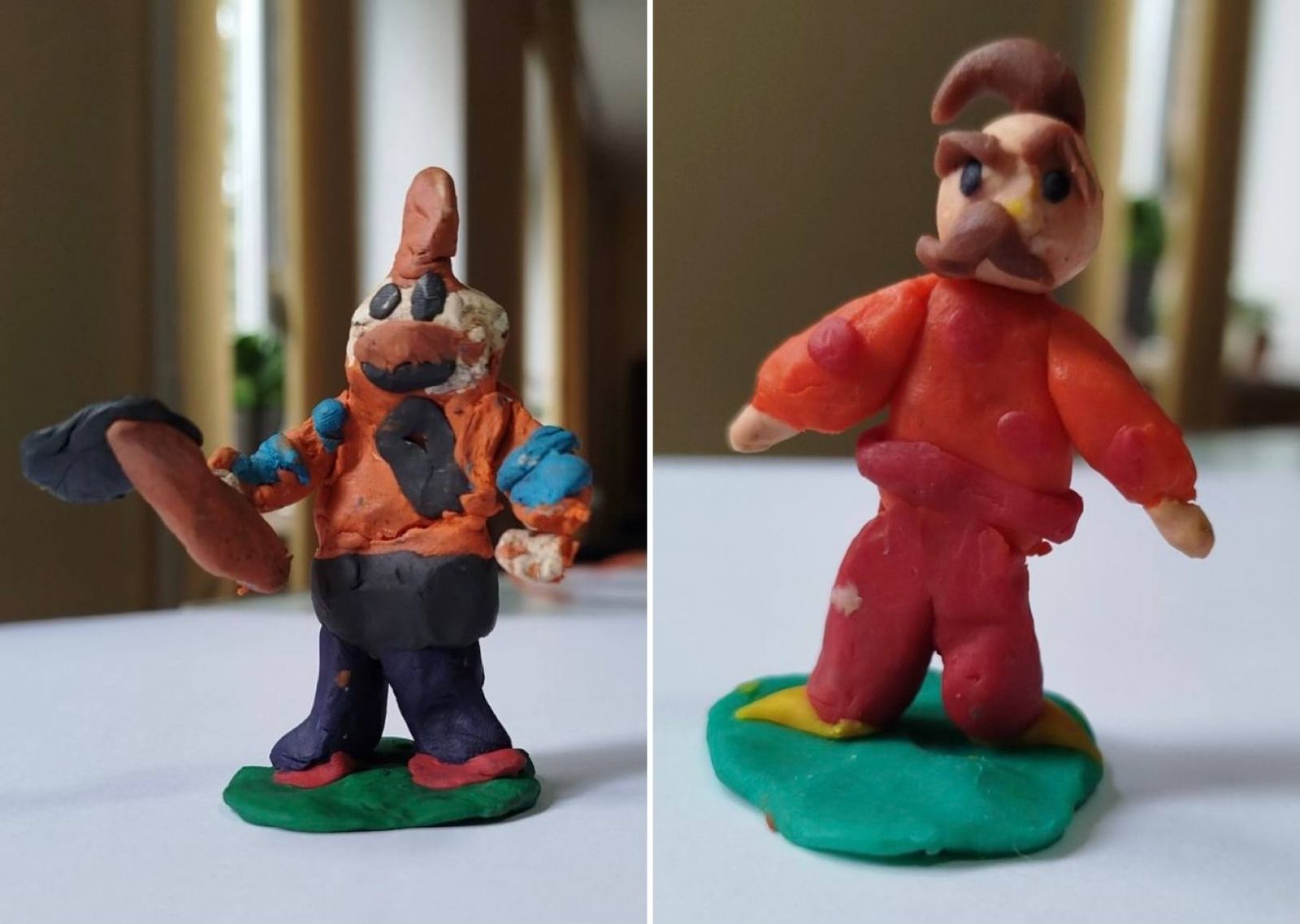 До Дня українського козацтва учні перших класів Ірини Бочулі старанно і досить вміло також ліпили з кольорового пластиліну фігурки козаків. Вони вийшли яскраво привабливими, часом трохи кумедними, але по цих маленьких скульптурках можна одразу здогадатись, що перед зображення людей не теперішнього часу, а сивої давнини: і аксесуари, і атрибути, і одяг, і зачіски в них зовсім не подібні до сучасних. І виконання цих творів також увійшло до списку заходів, які Ірина Сергіївна зробила до Національного свята України – Дня українського козацтва. Пам’ятаймо наше коріння, наших пращурів, які виборювали і берегли нашу Україну! Слава українським козакам! Слава Україні та сучасним воїнам ЗСУ!