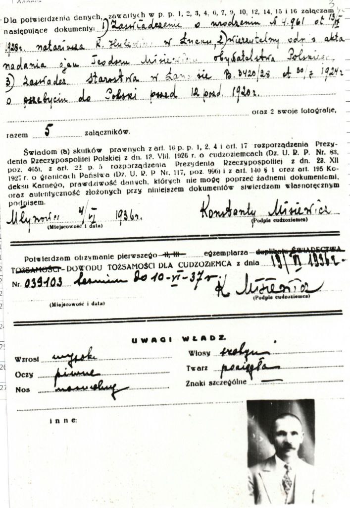 У донесенні цього ж поліційного відділу за квітень йдеться, що Місевич «підтримує стосунки з підозрілими і судимими політичними злочинцями Сергієм Кондратюком, Ільком Терновим та іншими з села Млинівці, Юхимом Нікітюком з села Бережці. До того ж, постійно перебуває в товаристві вороже налаштованих до Польської держави і, згідно з накопиченими даними, буде виступати політично під час наступних виборів до Сейму і Сенату на користь УСРР (цей пасаж – незрозумілий! – авт.) і стане тягарем для польського суспільства і держави. Тому локальний відділ поліції вважає за необхідне депортувати Місевича Костянтина з Польської держави».Та вже у подальшому звіті жандармів за травень-червень цього ж року вказується, що поведінка Костя Місевича змінилася «в позитивний бік, під впливом страху, що може не отримати дозволу на подальше перебування у Польщі». Поліція звітує, що Місевич «більше не приймає у себе політично підозрілих та неблагонадійних осіб, не підтримує з ними стосунків».