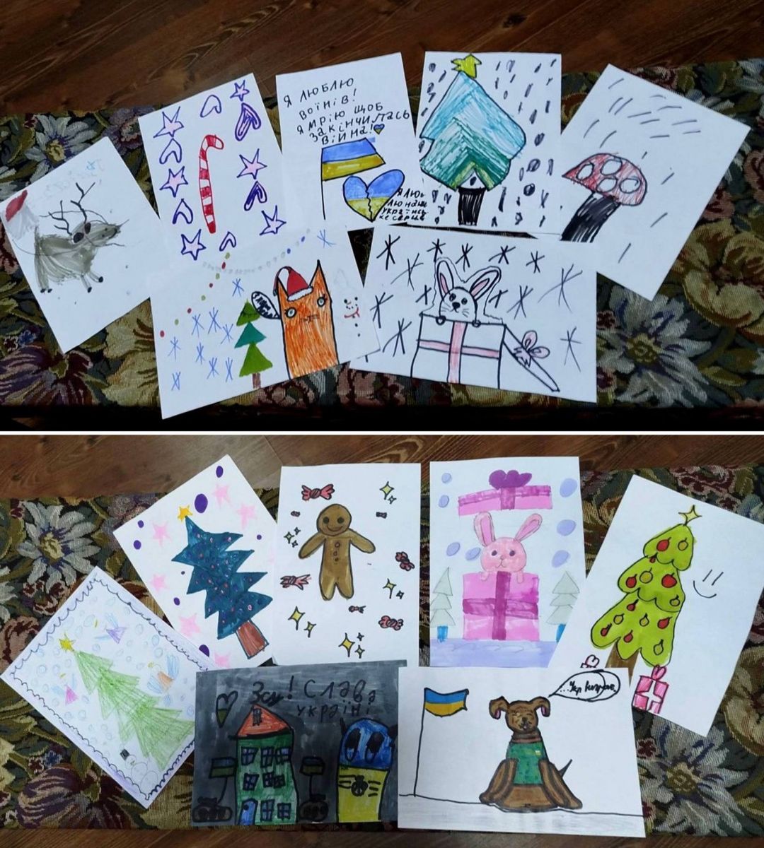 Так, або подібно до цього, писали у своїх листівках-привітаннях з Різдвом і прийдешнім Новим роком учні 2-3-х класів елементарного підрівня Хмельницької художньої школи, коли в День Збройних Сил України вони були на уроках і їм так хотілось висловити всі свої побажання воїнам. Викладачка Світлана Гуменна не просто заохотила своїх юних вихованців, а ще й розповіла про буремні дні, які переживає наша держава нині, а славні її сини – воїни ЗСУ виборюють Україні Перемогу. Тому – то листівки вийшли оригінальні, зворушливо-теплі і їхні автори сподіваються, що ці прості малюнки зі скромними підписами принесуть українським бійцям гарний настрій напередодні свят. Слава Україні! Героям слава!