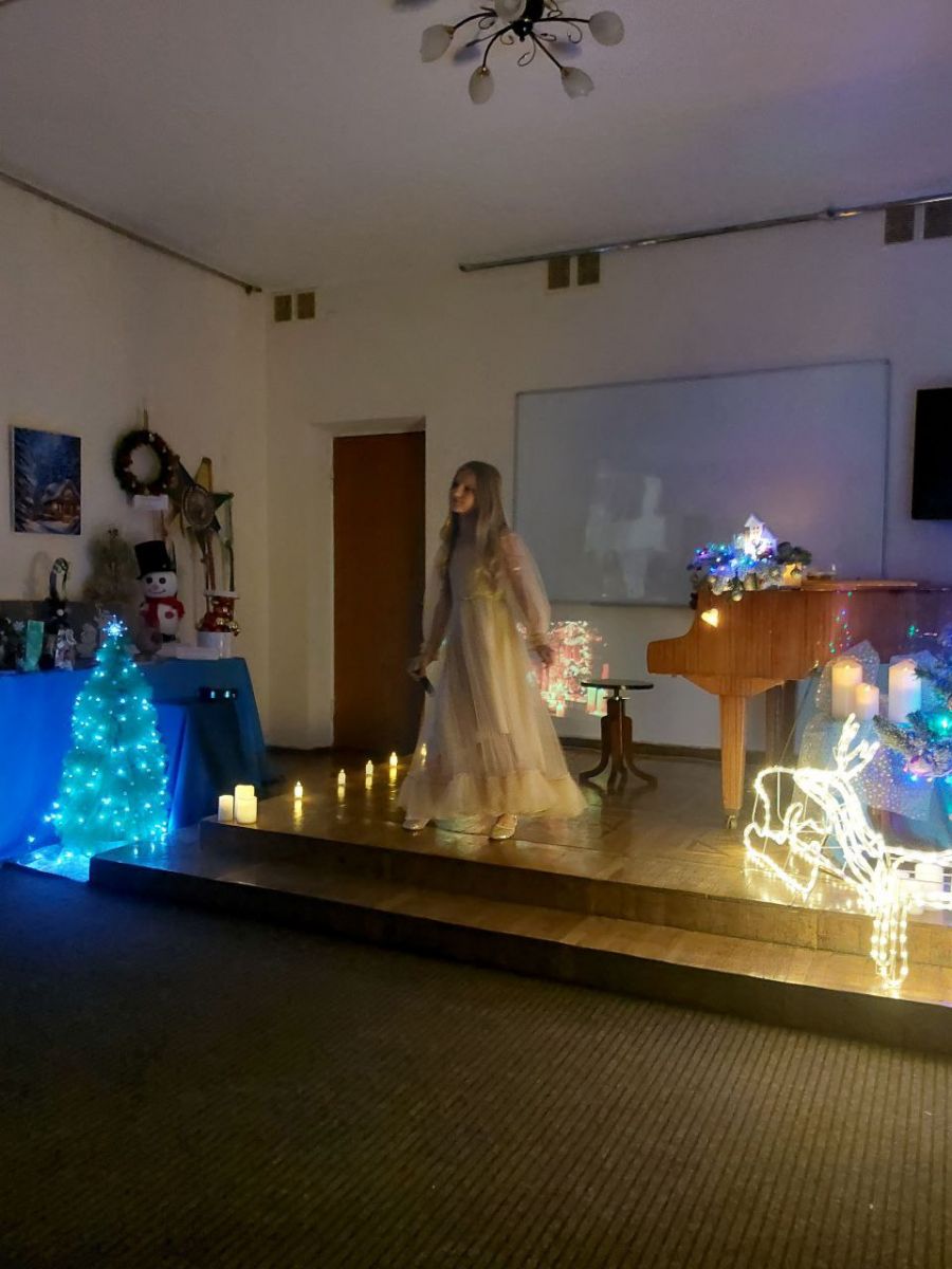 Головними героями вечора стали талановиті учні Хмельницької школи мистецтв «Райдуга» класу сольного співу викладача Людмили Будім: Олійник Вероніка, Гавриленко Уляна, Шевчук Віталіна, Сарафіян Емілі та Айлін. Юні вокалістки представили публіці сучасні різдвяні твори, зачаровуючи своєю щирістю та професіоналізмом.