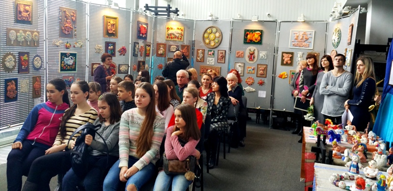 На виставці, яка діятиме до кінця квітня, представлено більше 100 рельєфів і таку ж кількість круглої скульптури. Відповідно оформлені, скомпоновані і виважено розміщені дитячі роботи приваблюють щирістю почуттів, дитячою безпосередністю, а часом і високим рівнем майстерності, що притаманний досвідченим керамістам.