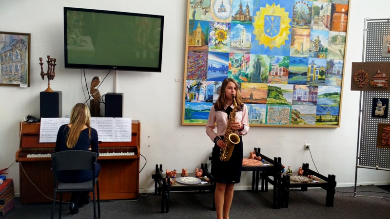 Чудовим музичним обрамленням заходу став виступ вихованців Хмельницької музичної школи № 2 Вікторії Дмитрук, яка виконала на саксофоні музичну п’єсу Гершвіна «Плескай в такт» та «Сонату» Дж. Екльса в супроводі фортепіано (концертмейстер Інна Аріон), та запальне вокальне соло Анастасії Полець, котра заспівала пісню Костенка-Київського на слова Григорака «В полонині скрипка грає» під акомпанемент концертмейстера Надії Корч.
