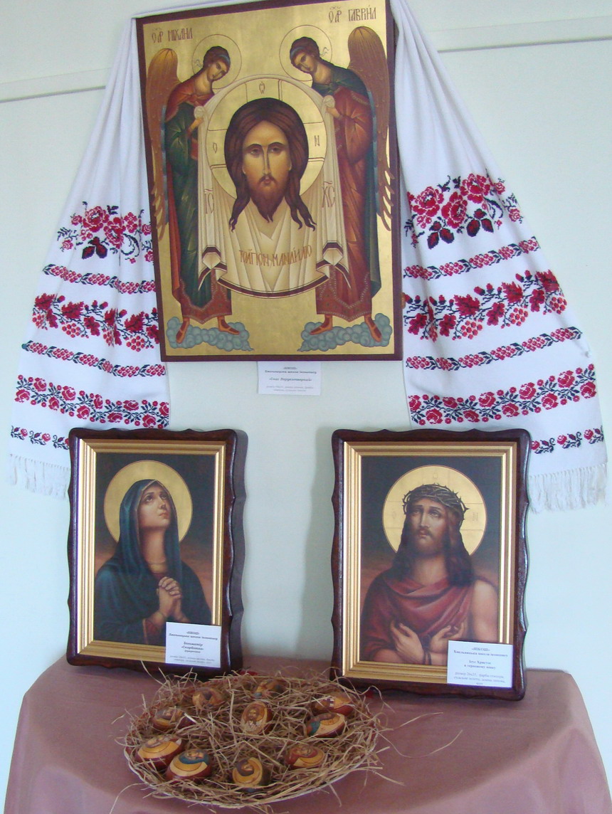 Воскресіння Господнє – це головне і найсвітліше з усіх християнських свят, продовжує Микола Володимирович, це торжество, яке відображає всю глибинну суть християнства. Ця суть віддзеркалена в центральній іконі виставки, що має назву «Воскресіння Господнє», де Ангел сповіщає жонам-мироносицям про Воскресіння Господнє.