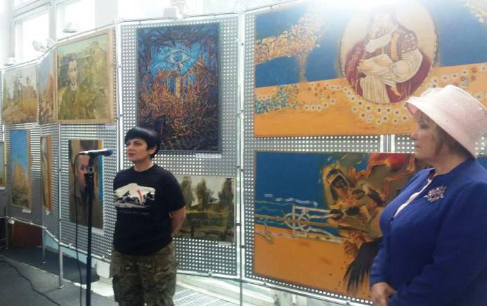 До виступу колеги долучилася й Галина Сарочик, яка поділилася з гостями виставки власними переживаннями щодо подій в АТО та здійснення цього мистецького проекту, який є втіленням єднання та братерства українців та білорусів.