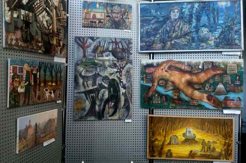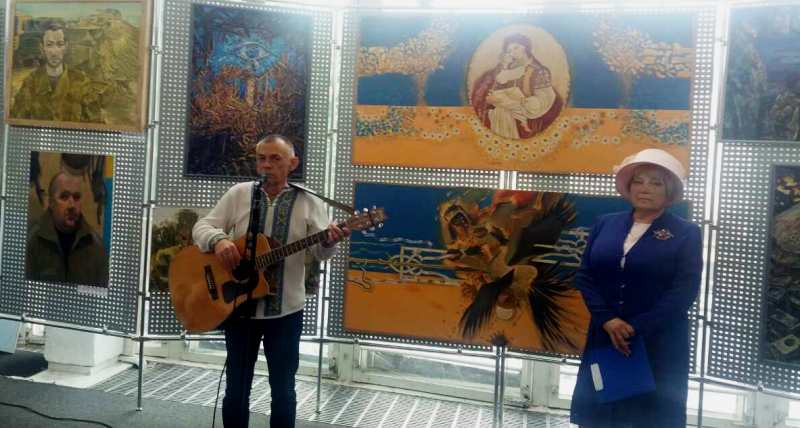 Ініціатор проведення виставки в нашому місті Андрій Чумаков, представник ГО «Подільська козацька січ», подякував тактичній групі «Білорусь» та благодійному фонду «Волошка» за надану хмельничанам і гостям міста можливість побачити ці полотна, створені в зоні АТО.