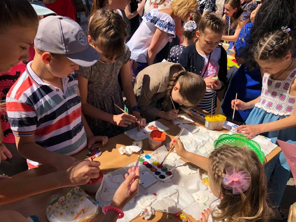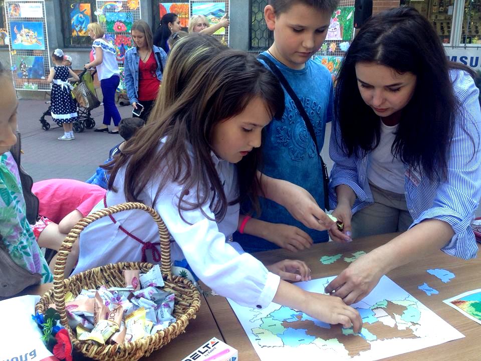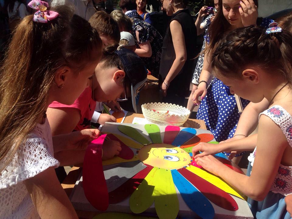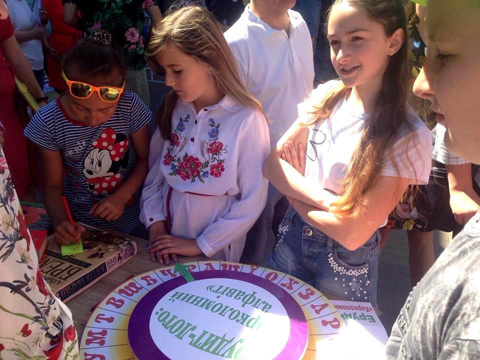 На вулиці біля бібліотеки не сумували. Тут було і ерудит-лото, і гіпсові фігурки, які потрібно розмалювати; діти юрбою радісно складали «сонечко мрій», виготовляли літні листівки та квіти, відгадували звірят (а потім тим же звірятам придумували мрії!), а ще складали Україну із пазлів-областей.