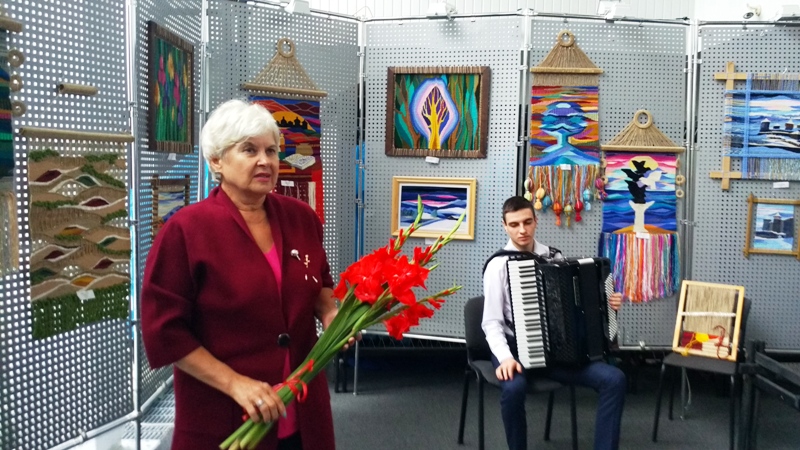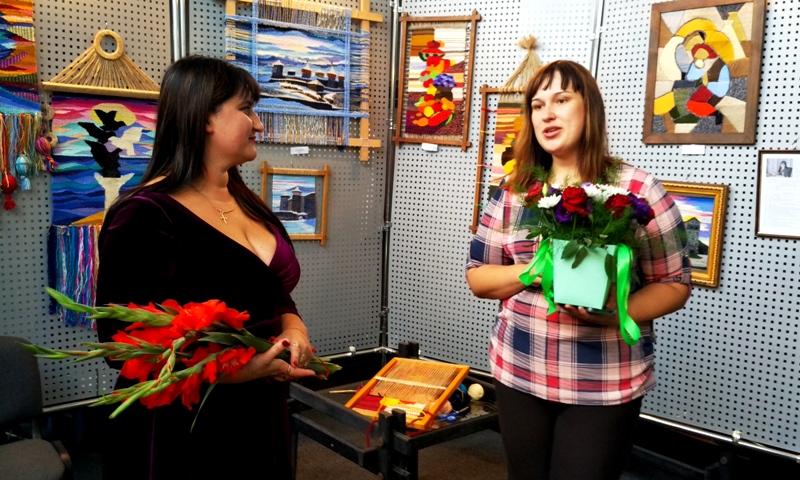 Вітаючи Юлію Анатоліївну з приємною подією, директор музею історії міста Хмельницького Галина Барабаш нагадала гостям про історію розвитку ткацького ремесла на території України. Найпростіші ткацькі верстати і ткані вироби в Україні археологи і дослідники датують добою неоліту, сьомим – шостим тисячоліттям до нашої ери. Ткали з вовняної та конопляної сировини. З середини третього тисячоліття до н. е. Аж до початку ХІХ століття кожна українська жінка самотужки забезпечувала потреби своєї родини у тканих виробах, старалася опанувати розмаїття складних технік виготовлення різних видів тканин та узорів. Вони і досі вражають нас довершеністю та естетикою. Для українського художнього ткацтва характерна декоративність і контрастність кольорів.