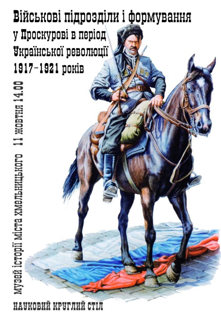 Запрошуємо всіх бажаючих взяти участь у науковому круглому столі «Військові підрозділи і формування у Проскурові в період Української революції 1917-1921 років», який проводить музей історії міста Хмельницького 11 жовтня 2018 р. о 14.00 за адресою вул. Проскурівська, 30. Захід відбуватиметься за підтримки Хмельницької міської ради та управління культури і туризму Хмельницької міської ради.