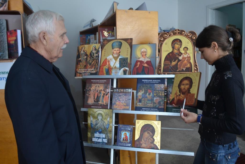 Завідуюча філії Людмила Іванівна представила друковані видання, де є можливість побачити та порівняти техніки написання ікон з часів Київської Русі і до ХІХ ст. Книжкова добірка допомогла зрозуміти наскільки глибокі традиції має український іконопис інтерпретуючи усталені канони, типи, сюжети через призму національного світосприйняття. Не оминули свято Водохреща: розповіли про походження, традиції.