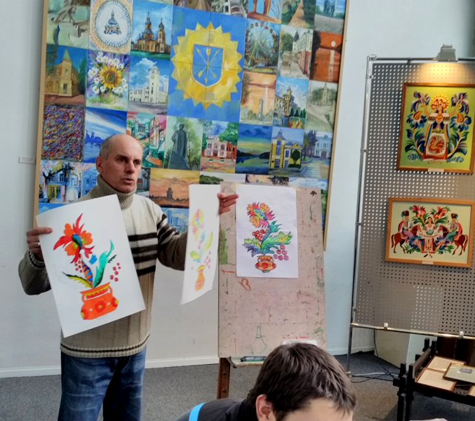 Для них Віктор Геннадійович Раковський, директор Самчиківської художньої школи традиційного народного декоративно-прикладного мистецтва, після урочистого відкриття експозиції провів майстер-клас.