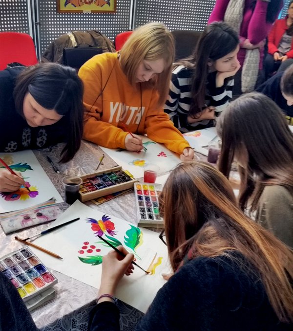 З великим інтересом сприйняли самчиківські мальовки художників та розписні тарелі роботи майстра Віктора Раковського майбутні дизайнери, учні Хмельницького ВПУ № 25.