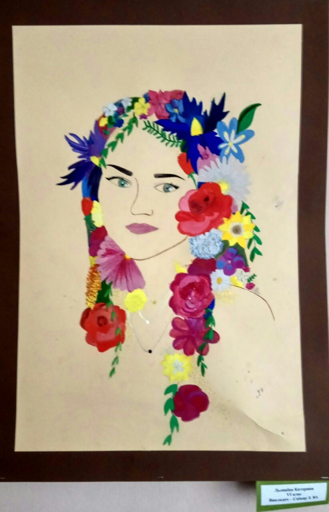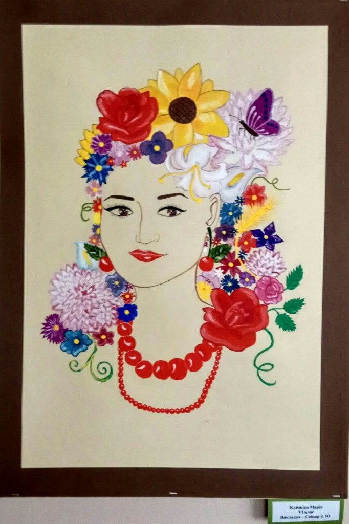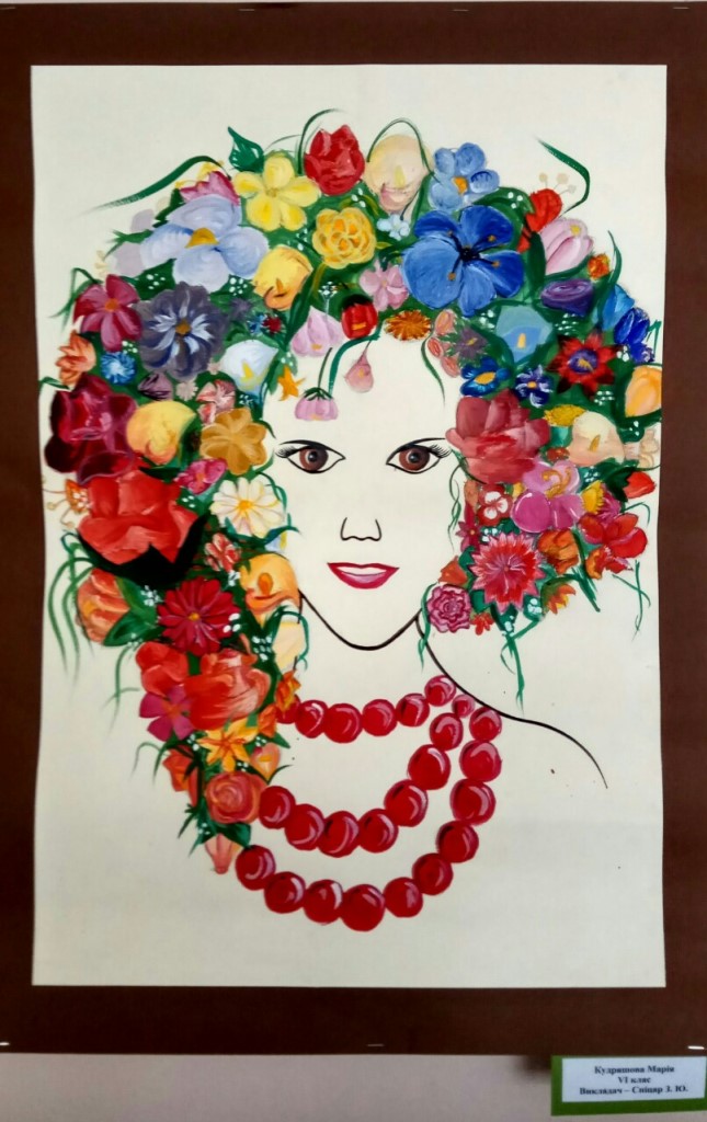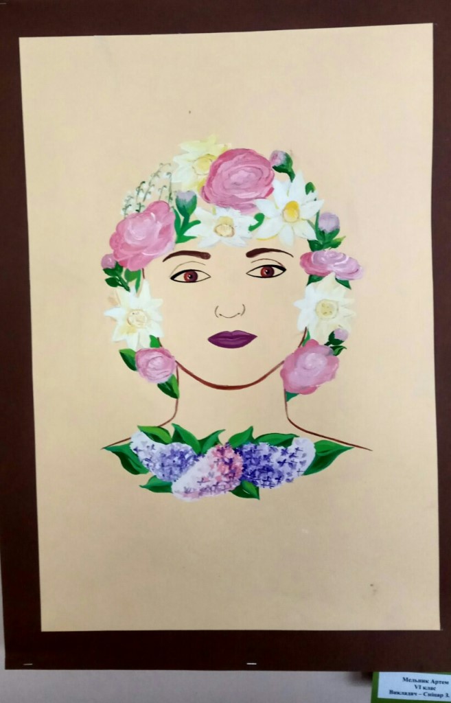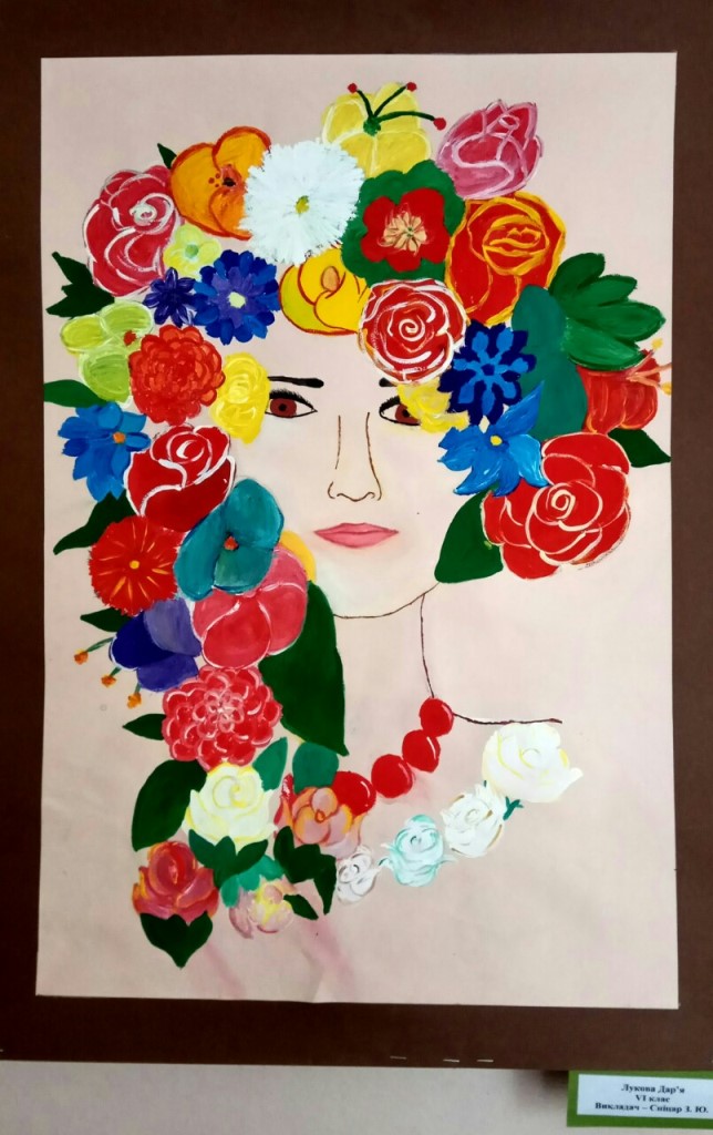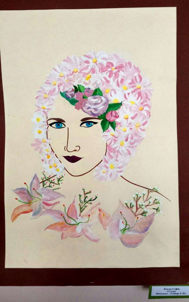 Двадцять одну творчу роботу у техніці живопису гуашевими фарбами представили учні VI класу викладача Зої Сніцар. З дитячих полотен посміхаються заквітчані матусі, зачаровуючи глядачів зворушливістю та чарівністю.
