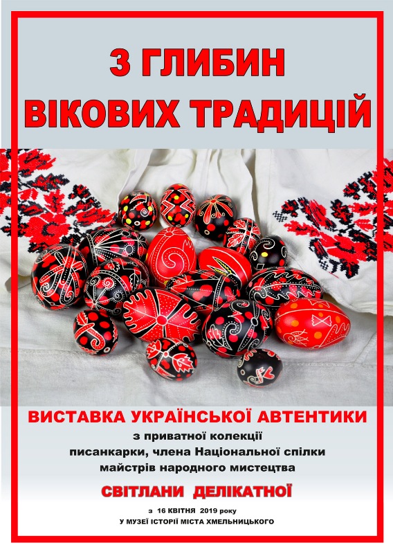 У мистецькій залі музею історії міста Хмельницького відкрилася виставка вишиванок та писанок з приватної колекції знаної писанкарки, члена Національної спілки майстрів народного мистецтва, викладача Хмельницької дитячої школи образотворчого та декоративно-прикладного мистецтва Світлани Делікатної.