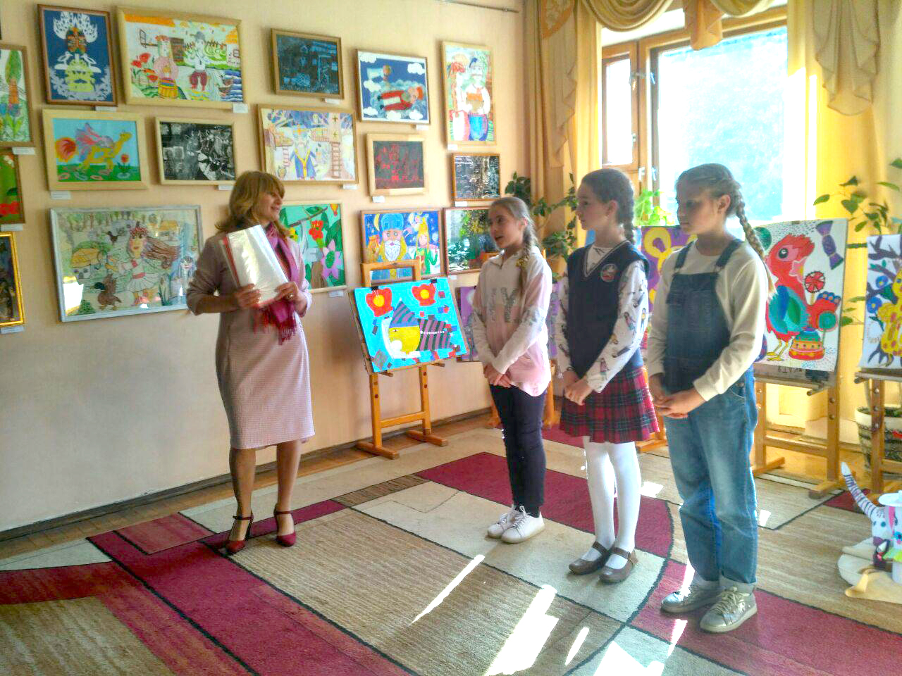 В теплій і затишній царині казкових героїв діти радо ділились своїми таємницями. Вони разом з викладачем знайомили батьків та гостей з вибором сюжетів, героїв для створення образів, з техніками їх виконання. Виставку сформовано різнотематичними роботами. Представлено композиції на обрядову тематику, яскраві роботи за усною народною творчістю, пейзажі створені за враженням від подорожей. Та найяскравіше за все представлені диво- тварини та портрети дітей «Я у вигляді тваринки».