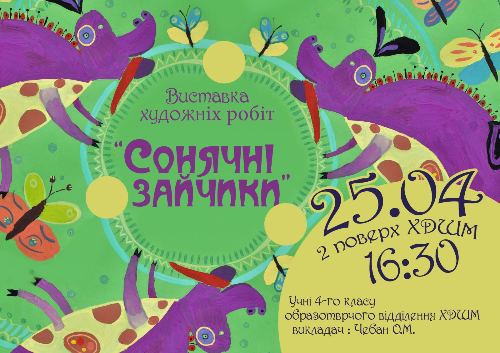 У четвер, 25 квітня, в приміщенні Хмельницької дитячої школи мистецтв відбулося відкриття виставки художніх дитячих робіт під назвою «Сонячні зайчики». Тут представлені роботи учнів 4 класу викладача Олени Чебан.
