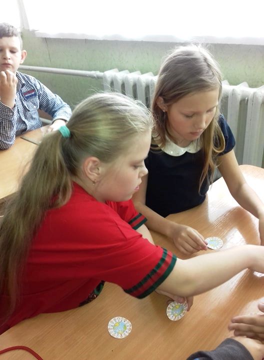 Діти старанно та із задоволенням відповідалина задані питання, дивились цікаві відеоролики, спілкувались між собою, розгадували загадки та виконували цікаві руханки. По закінченню уроку усі учні отримали жетончики, на яких зображена наша планета Земля.