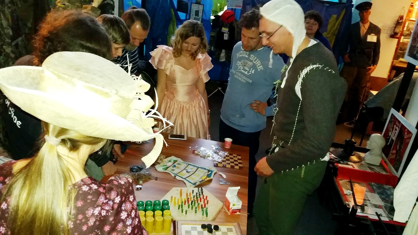 Спеціальний гість вінтажної вечірки – реконструктор періоду Західноєвропейського Середньовіччя та давній друг і волонтер музею Микола Тарас люб’язно представив присутнім середньовічні ігри, в які мали нагоду пограти всі, хто цікавиться настільними іграми. Середньовічні шахи на чотирьох «Чотири сезони», покер на костях, халатавль, манкала, скандинавські тавліі та весела хатка – це тільки верхівка тих знань про стародавні настільні азартно-інтелектуальні ігри, якими володіє та готовий ділитися з усіма охочими пан Микола Тарас.