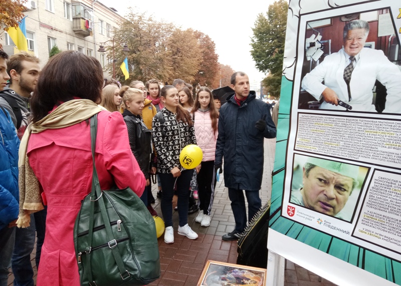 Музейники завзято ділилися власними знаннями з гостями виставки, які не приховували свого здивування.Таким чином, багато хто з допитливих перехожих дізнався про пулітцерівську лауреатку Аріель Дюран, винахідника голографії Михайла Дейгена, засновника мікрохірургії ока Святослава Федорова, геніального інженера-конструктора та будівника найвищої в світі високогірної залізниці в Перу Ернеста Маліновського, всесвітньо відомого психотерапевта Анатолія Кашпіровського, повстанського кобзаря та героя УНР Костя Місевича, останнього проскурівського міського голову доби УНР Миколу Сікору, який у скрутні для міста часи запровадив та ввів в обіг проскурівську бону, та, власне, "винуватця" нинішньої "супергероїчної" концепції Дня міста Джека Лейбовиця - одного з творців Супермена та Бетмена. І всі ці значущі для світу імена пов'язані з історією саме нашого міста.
