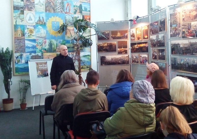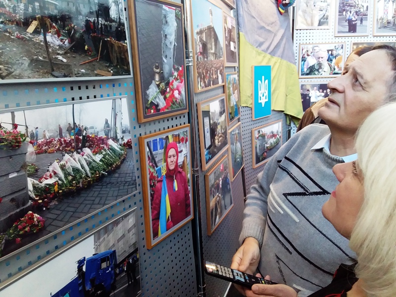 Киянин Олександр Сліпченко розповів, як відстежував і фіксував для історії перебіг Революції Гідності. Про кожну свою світлину, панораму, людей, які творили Майдан, автор може розповідати годинами, і це – справді пізнавальна екскурсія. Недаремно пан Олександр деякий час працював у музеї Революції Гідності. Свій архів – а це не лише світлини з Майдану, а й відеоматеріали, автор планує передати у Центральний державний кінофотофоноархів України. Його роботи представлені в музеї Революції Гідності. А відтепер поповнять фонди й музею історії міста Хмельницького.