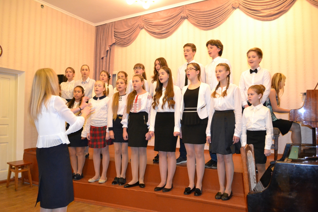 У концерті взяли участь хорові колективи школи, а саме: хор молодших класів інструментальних відділів (керівник Ірина Гнаткова, концертмейстер Іоанна Барвік), хор старших класів інструментальних відділів (керівник Ірина Коршунова, концертмейстер Інна Аріон), зведений хор вокально-хорового відділу (керівник Лілія Петрусь, концертмейстер Оксана Богданова).
