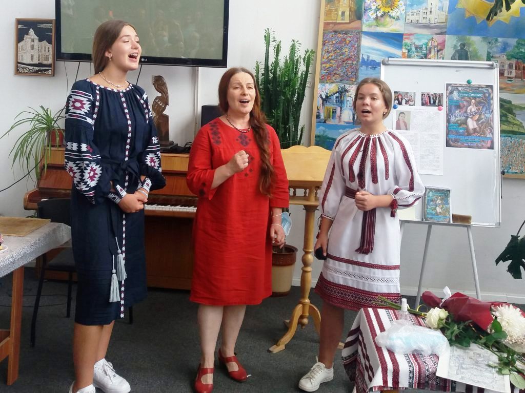 Керівник народного ансамблю «Джерельце» дитячої школи мистецтв «Райдуга» Тетяна Міцель та її вихованки Марина Мазур та Юлія Гриб додали настрою душевним виконанням народних пісень «Ой, там за лісочком» та «Терниця».