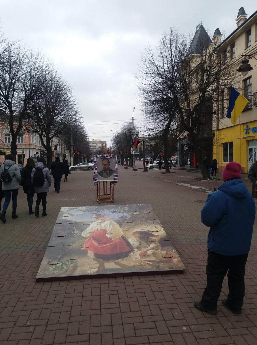 Вихованці Хмельницької дитячої школи образотворчого та декоративно-прикладного мистецтва провели флешмоб зі складання з пазлів зображення картини Тараса Шевченка «Катерина».