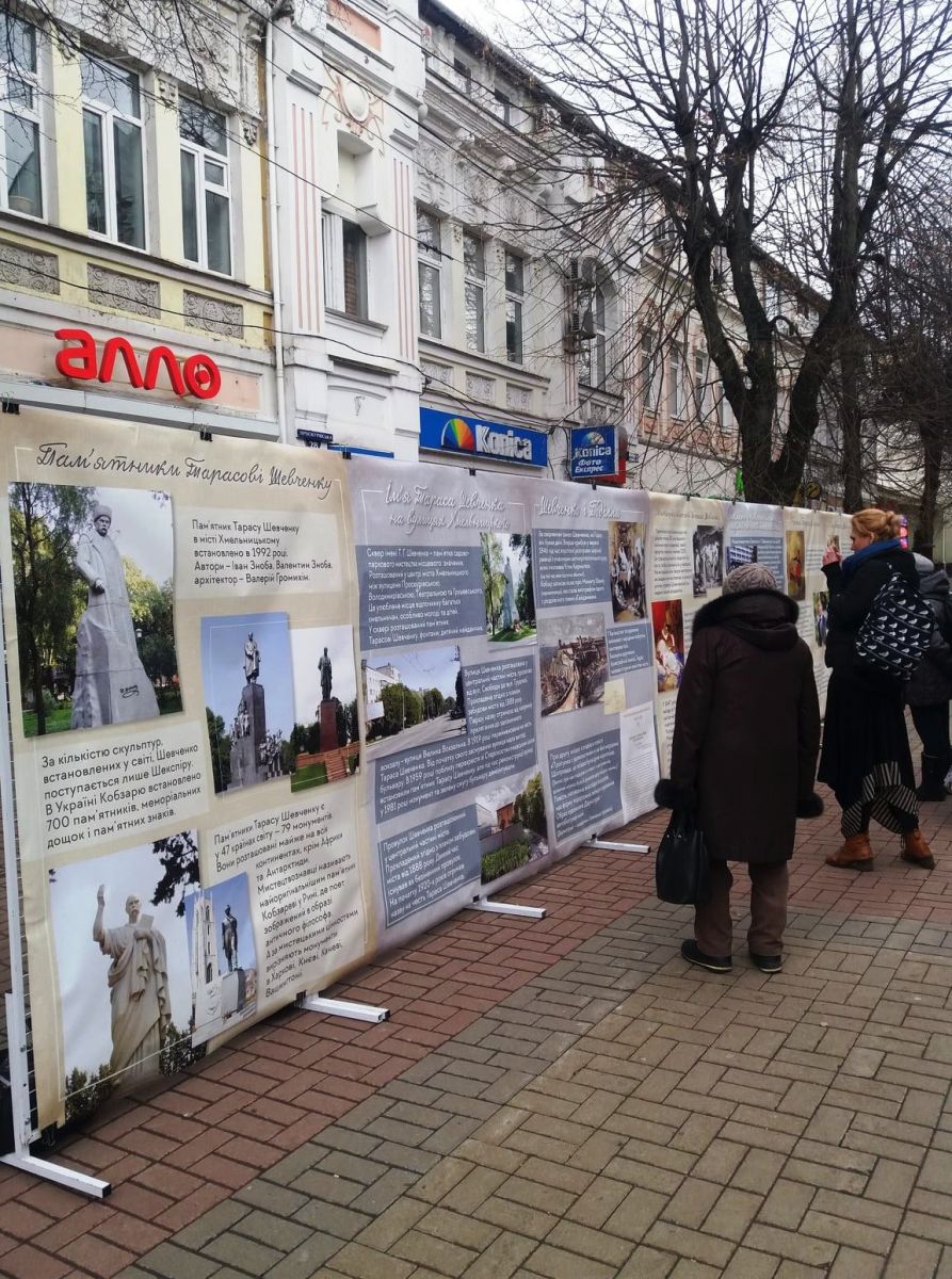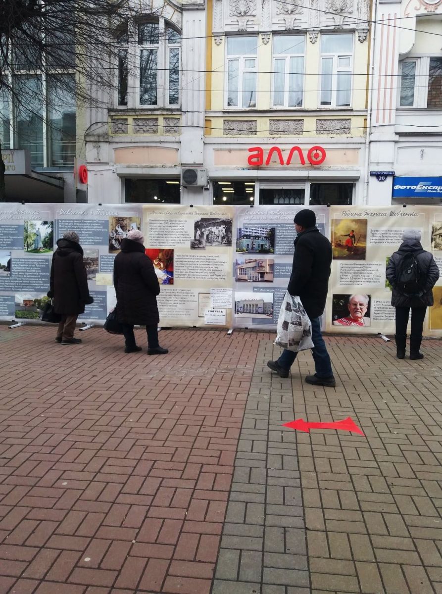 Впродовж дня просто неба на Проскурівській розгорнуто інформаційну виставку «Ай-стопер: Тарас Шевченко». Банери розповідають про життя і творчість Тараса Григоровича, цікаві моменти, пов`язані з його мандрівками на Поділля, його родиною, малярською та письменницькою спадщиною, вшануванням пам`яті Кобзаря у світі, в Україні та в місті Хмельницькому. Прикметно, що з 1966 року в нашому місті над Бугом жив та працював викладачем Хмельницького економічного технікуму двоправнучатий племінник (праправнук по братові Йосипу) Т. Г. Шевченка Олександр Андроникович Відоменко.