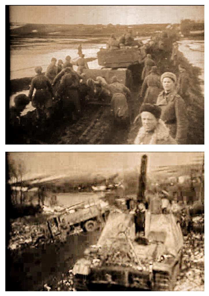 Червона армія атакували зі всіх напрямів. Цю фразу, мабуть, повторювали десять тисяч разів, але це правда. Якою була атака? Важкою. Червоні сапери навели мости через річку, що розлилася. Це було важко і фізично, тому що вода була крижаною. Німці невпинно вели обстріл всіх пунктів, де червоні сапери намагалися навести переправу. Чи вдалося їм форсувати річку? Так. Червоні танки переправилися через річку.Вони перейшли її біля Чорного Острова Чорний Острів - населена місцина, але тоді там нікого не було. Танки. Що переправилися біля Чорного Острова, обійшли з флангів німецькі танки. Вони підходили один за одним і підривали їх. Потім переправилося ще багато танків та було захоплено місце під назвою Западинці. Це був укріплений пункт на шосе і це було початком кінця. Німці здійснили контратаку і ввели в бій до сотні танків. Крім того, вони скинули парашютистів, які зав'язли по шию в багні Чорного Острова, замерзли у талій воді або вступили у бій та були вбиті.
