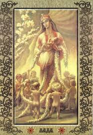 Наші далекі предки з великою побожністю ставились до материнства і загалом шанобливо до жінки. Свідченням цього є значна кількість жіночих божеств, особливо їхній зв'язок з материнством і сімейними цінностями.