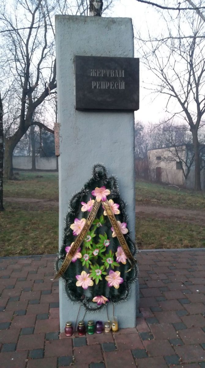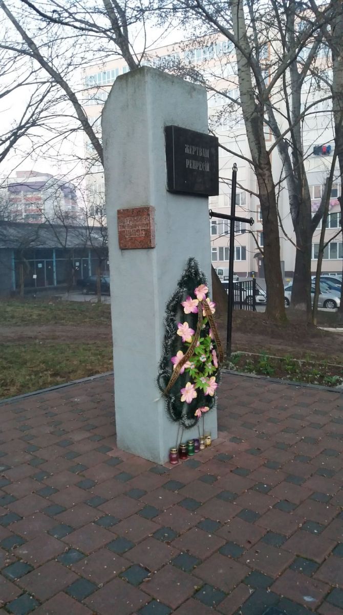 18 серпня 1989 р. на території міського кладовища за сектором військового кладовища по вул. Фрунзе ( нині Кам`янецька) з ініціативи місцевого РУХу міська влада відкрила меморіальну стелу з сірого бетону з двома гранітними табличками. На фасаді стели – табличка з чорного граніту з написом: «Жертвам репресій», збоку стели – табличка з червоного граніту з написом: «Від громадян Хмельниччини 1989 р.». Біля цього пам`ятного знаку влітку 1990 року були захоронені у братській могилі останки 20 жертв репресій у 12 трунах, які були віднайдені рухівцями на чолі з Павлом Гірником, Віктором Кліщем на спорудженні гаражного масиву по вул. Рибалка через дорогу від підприємства «Хмельницьклегпром». На ділянках офіційно підтверджених і вказаних на схемах захоронень на території КАТП № 222801 і майданчика, де розташований «Хмельницьклегпром», який перебрав свого часу недобудовану споруду фабрики від Міністерства легкої промисловості, було покладено асфальт, збудовано гаражі, інші приміщення. Пам`ятники та пам`ятні знаки на безпосередніх місцях захоронень відсутні. Кримінальну справу за зібраною громадськістю та органами КДБ-СБУ впродовж 1966 р., 1989-1993 р.р. не було порушено.