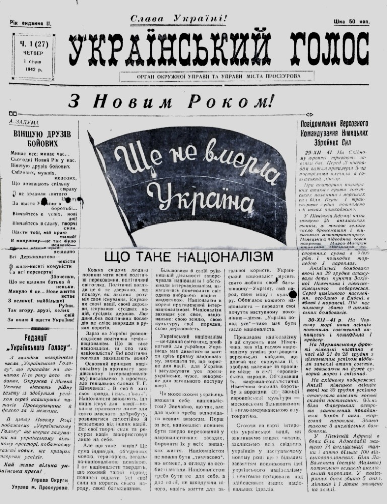 Під тиском переможних сил ворога 8 липня 1941 р. місто Проскурів було окуповане нацистами. Одна окупація прийшла на заміну іншої.